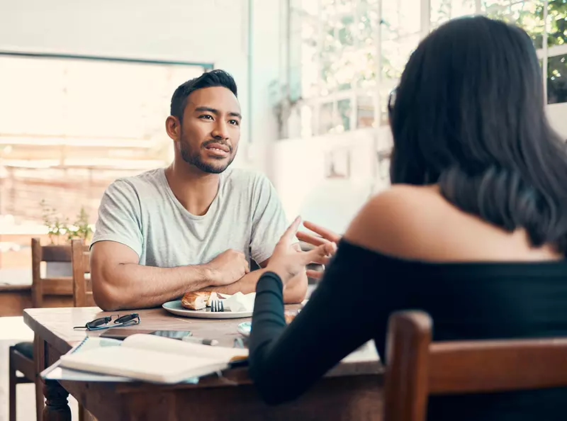 نباید این حس به شخص داده بشه که شما هنوز درگیر روابط عاشقانه قبلی تون هستین؛ بهتره این مورد رو در دیت اول کلا کنسل کنین و اگر هم دربارش سوال شد، بگید که خیلی راحت نیستم الان راجع بهش صحبت کنم.